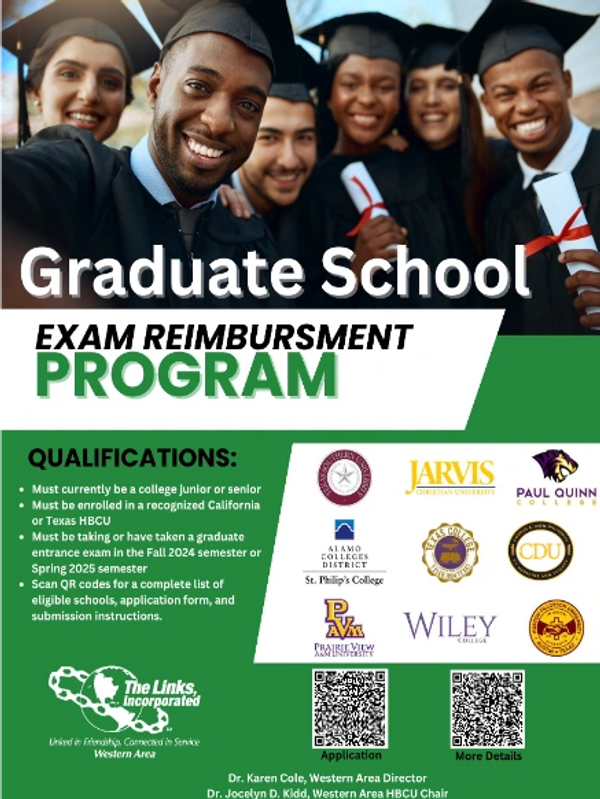 This is an opportunity for a junior or senior college student attending a Texas or California HBCU to be reimbursed for their graduate school entrance exam fee.
